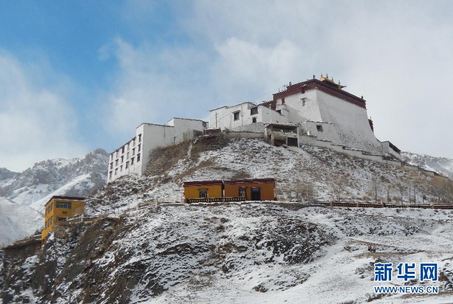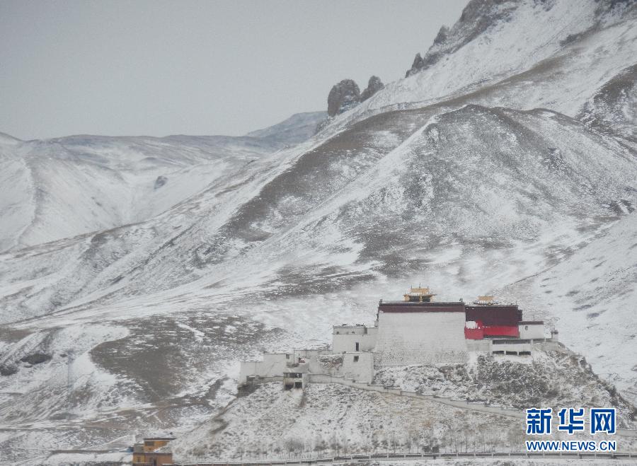 新華社照片,拉薩,2014年12月25日 藏北羌塘:冰雪世界裏的“隱秘修行地” 始建於1668年的藏傳佛教格魯派寺廟贊丹寺位於西藏那曲地區索縣境內,海拔4000餘米,143名僧人在此修行(12月22日攝)。歲寒時節,藏北羌塘腹地銀裝素裹,古樸的藏傳佛教寺廟點綴其間,為童話般的冰雪世界增添了一道亮麗的風景。在這些羣山環抱的寺廟深處,藏傳佛教僧尼在嚴寒中潛心修習佛法,傳承藏傳佛教文化。新華社記者許萬虎攝