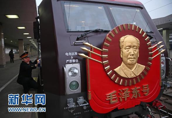 “毛澤東號”機車誕生於1946年10月。68年來,從最初的蒸汽機車,到內燃機車,再到此次換型後的和諧3D型大功率電力機車,見證了中國鐵路的發展與進步,目前已累計安全走行963萬公里。