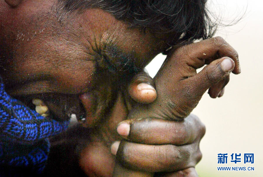 2004年12月27日,在印度南部城市馬德拉斯,一名男子握着自己海嘯中遇難兒子的手哭泣。 新華社/路透(李木子編輯)
