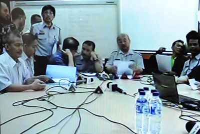 12月28日,失聯亞洲航空公司客機新聞發佈會在雅加達蘇加諾哈達機場舉行(電視截圖)。新華社記者賀長山攝