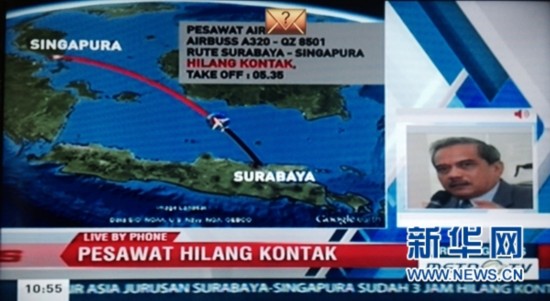 亞洲航空公司一架從印度尼西亞飛往新加坡的客機28日早晨與地面控制塔失去聯繫,機上載有162人。目前這架客機仍下落不明,印尼官員稱如果客機仍處於飛行狀態,機上燃油應已耗盡。