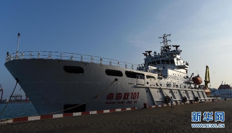 “南海救101”輪在南海待命(2014年3月攝)。亞航QZ8501航班28日失聯後,中國外交部表示,中方願緊急派飛機和船隻參與搜救。目前,中國海軍1艘護衞艦已向客機失聯海域方向機動,“海巡31”輪、“南海救101”輪、“南海救115”輪已整裝待命,可隨時提供幫助。新華社記者 趙穎全攝