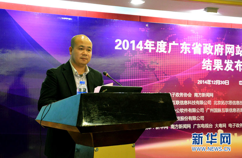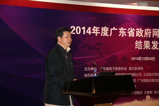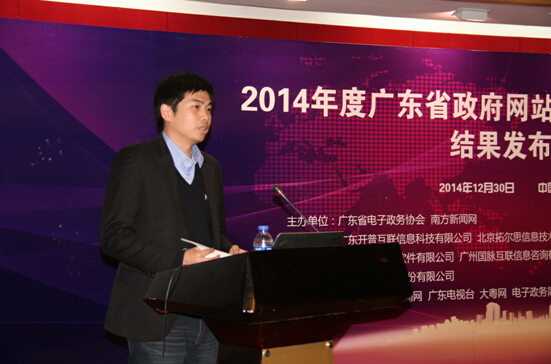 “ 2014年度廣東省政府網站公共服務程度評測報告”由廣東省電子政務協會聯合南方新聞網共同發佈。南方新聞網總經理楊雲飛在開幕致辭。
