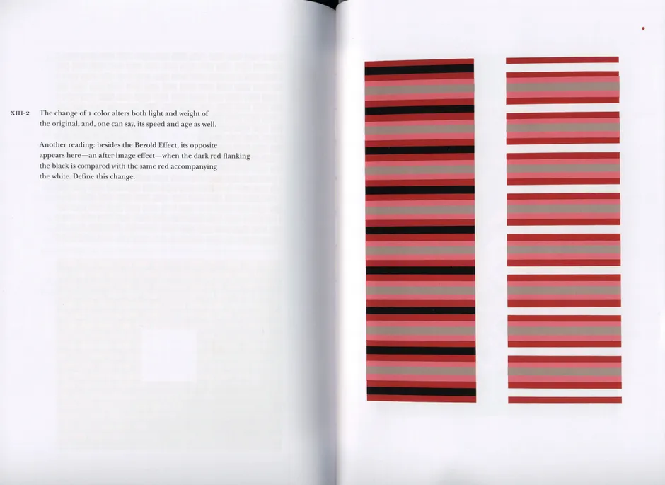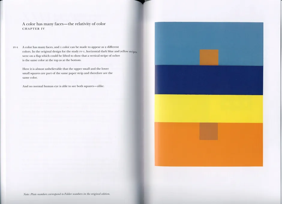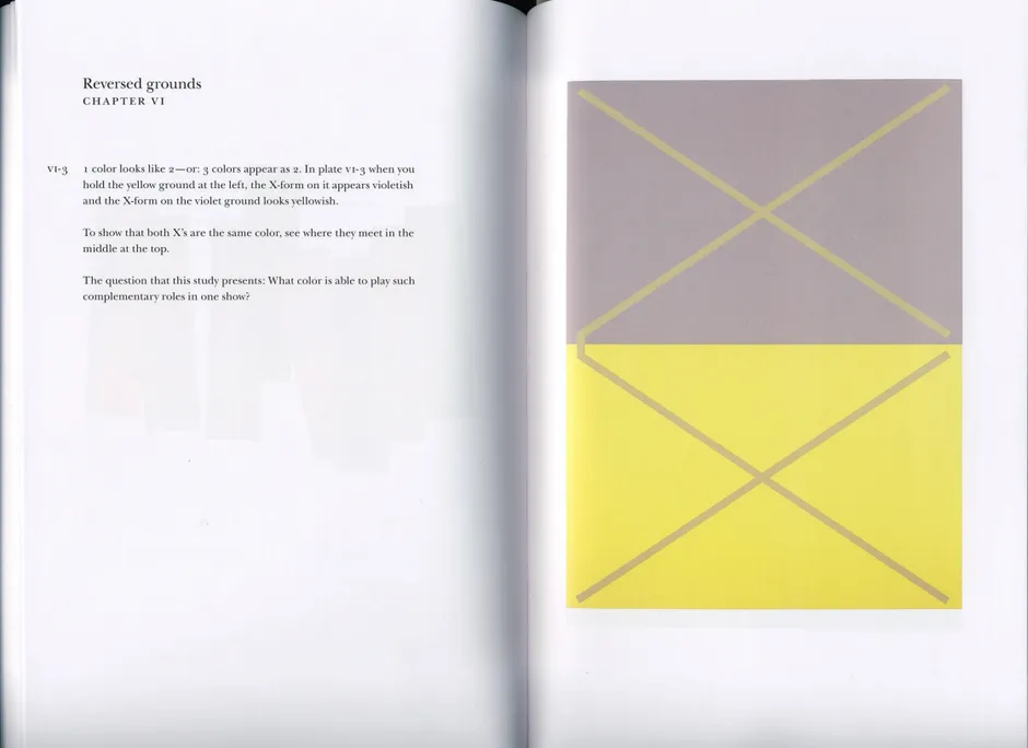 阿爾伯斯的書通過概述關鍵的色彩理論問題來運作,然後通過色彩圖版展示它們是如何運作的。這些圖版類似於阿爾伯斯標誌性的 致方形的致敬 繪畫,這是他探索了超過30年的系列作品。該書篇幅較小,從一個啓示轉向下一個啓示。