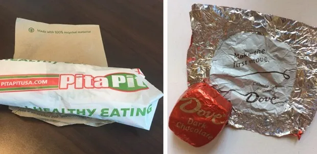 有趣的是,我的女性編輯購買的皮塔餅三明治的包裝上用粗體綠色字母寫着“健康飲食”。而德芙黑巧克力上也有一個小信息,迎合女性受眾,鼓勵消費者放縱自己並“主動出擊”。相比之下,我男性朋友的早餐捲餅上則用大寫字母 emblazoned 了“至尊”這個詞——與研究中使用的“超級”一詞非常相似。