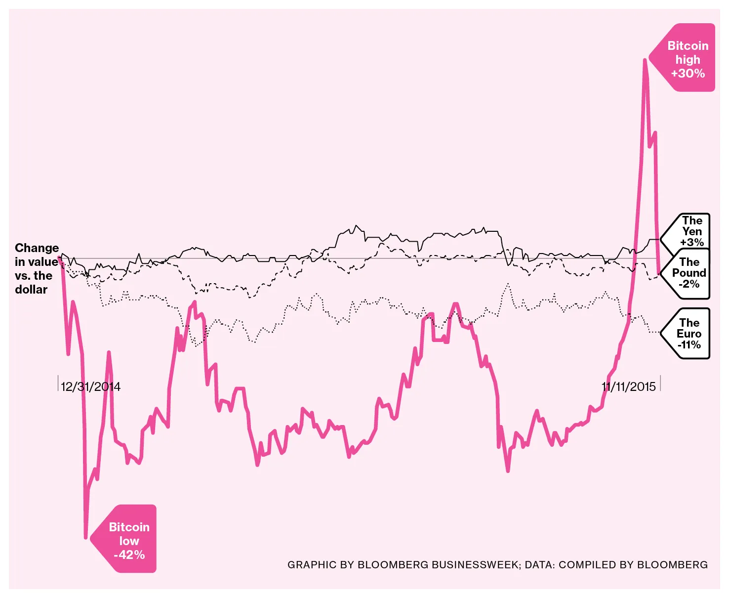 詐騙者似乎是比特幣的最大用户,部分原因是其波動性:很少有人願意以一種可能在一夜之間失去四分之一價值的貨幣進行交易。雖然零售商和其他消費公司喜歡通過表示他們接受比特幣來獲得免費宣傳,但大多數會立即將支付轉換為美元。“如果它沒有穩定的價值,它可能無法生存,”諾貝爾獎得主經濟學家尤金·法馬在最近的一期播客中説道。