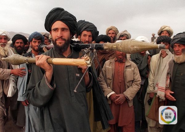 2001年5月1日,阿富汗塔利班武裝人員手持火箭發射筒在阿富汗西北部城市赫拉特附近的一個難民營佈防。(圖片來源:新華社)