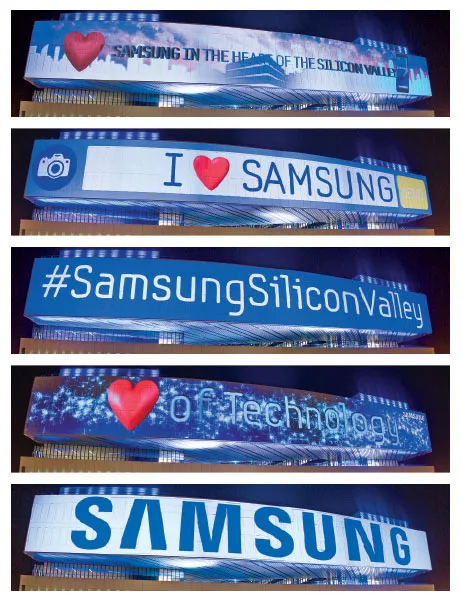 攝影師:Orbie Pullen在今年的超級碗期間,最引人注目的廣告遠遠超出了利維斯體育場的牆壁。在這場盛大的比賽中,觀眾和一些目光敏鋭的電視觀眾可以看到三星的內存芯片和處理器的廣告——不是在體育場內,而是在距離近2英里外的一個巨型顯示屏上。三星將其新的聖克拉拉芯片製造總部的兩層樓改造成一個臨時數字廣告牌,尺寸為30英尺乘300英尺。除了丹佛野馬隊和卡羅萊納黑豹隊,另一個重要的羣體也能看到他們的廣告:在超級碗以外的一英里處,英特爾的總部的任何人。