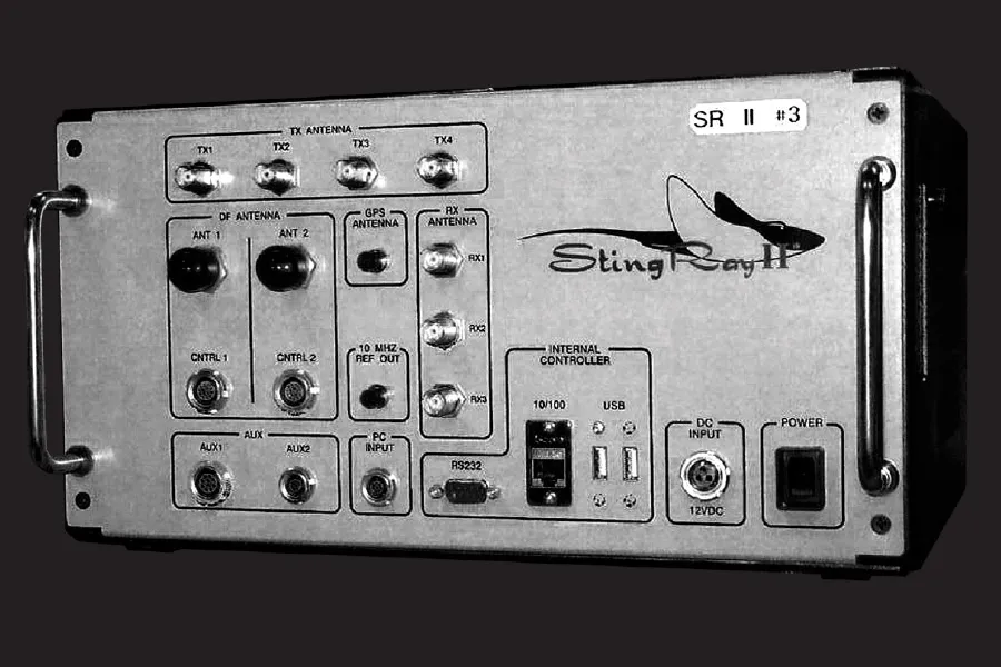 StingRay是一個手提箱大小的設備,通過假裝成手機信號塔來欺騙手機提供其序列號(通常還包括電話和短信)。這種設備的技術名稱是IMSI捕獲器或基站模擬器。它的零售價格約為40萬美元。哈里斯公司和像波音旗下的數字接收技術這樣的競爭對手向軍方和情報界出售IMSI捕獲器,並且自2007年以來,向洛杉磯、紐約、芝加哥以及21個州的50多個城市的警察部門出售。這些設備接收到的手機信號不僅可以用來定位警方正在尋找的任何手機(在某些情況下精確度僅為2米),還可以查看周圍還有誰。IMSI捕獲器可以掃描時代廣場,例如,或一棟公寓樓,或一次政治示威。