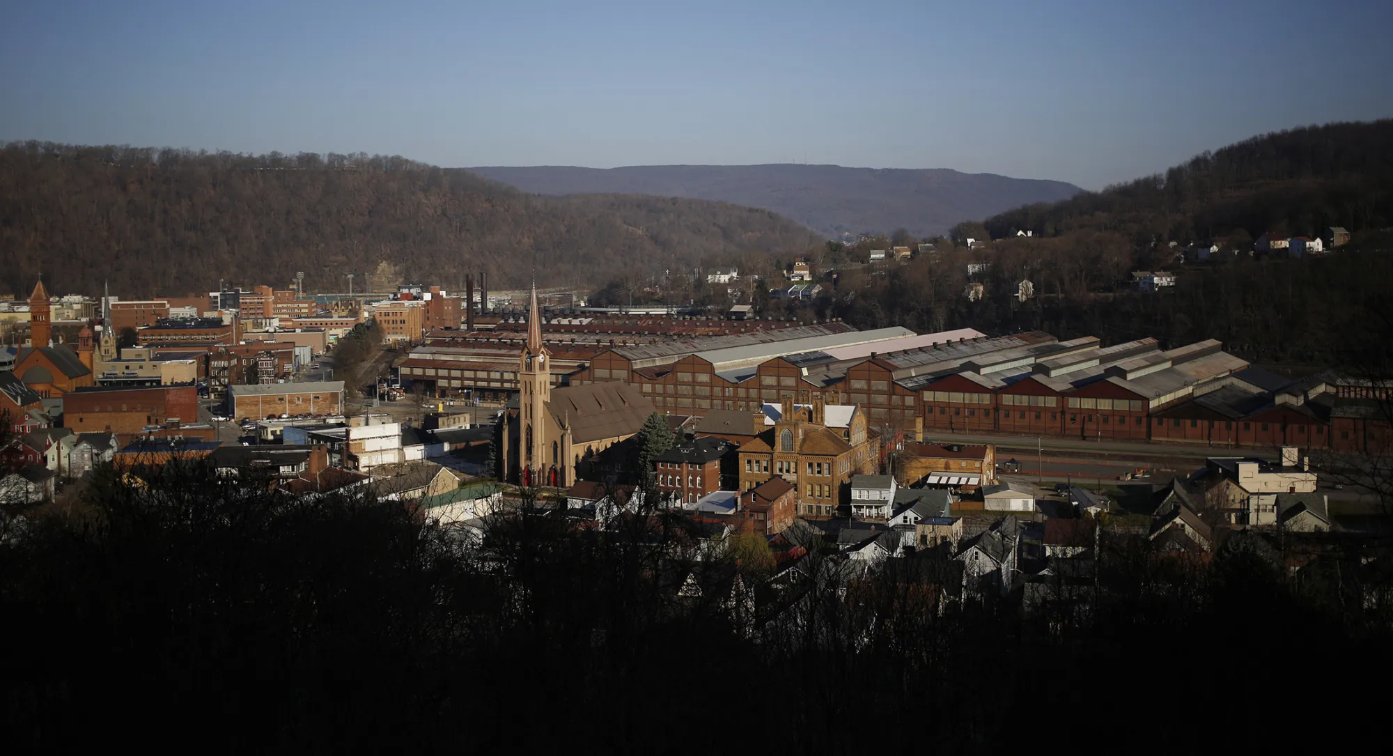 雖然沒有市鎮級的民調,但特朗普“讓美國再次偉大”的承諾在約翰斯敦引起共鳴,這裏有着強烈的失落輝煌的感覺。它曾是一個工業強國,生產出幫助建設鐵路、橋樑和摩天大樓的金屬,推動着快速發展的美國。第二次世界大戰後,約有18,000人在其鋼鐵廠工作——如今整個城市的人口剛剛超過20,000——他們讓科內莫河上空瀰漫着煙霧。居民們上下電車,在百貨商店購物,去三家主街電影院看電影。
