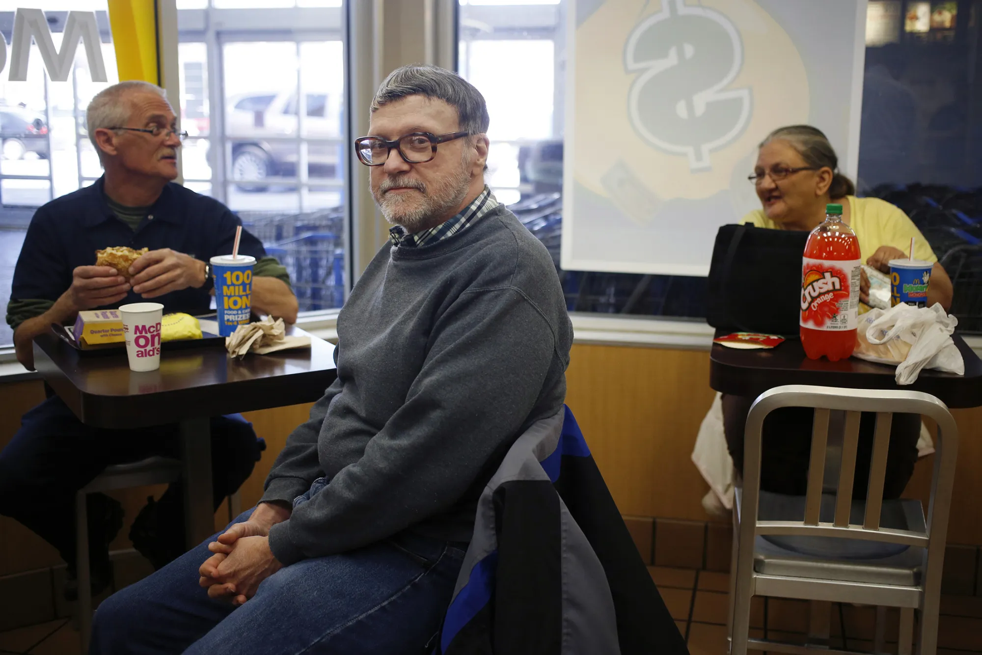 羅伯特·瓦爾戈,一位退休的土木工程師和特朗普支持者,早晨與朋友在當地麥當勞度過。