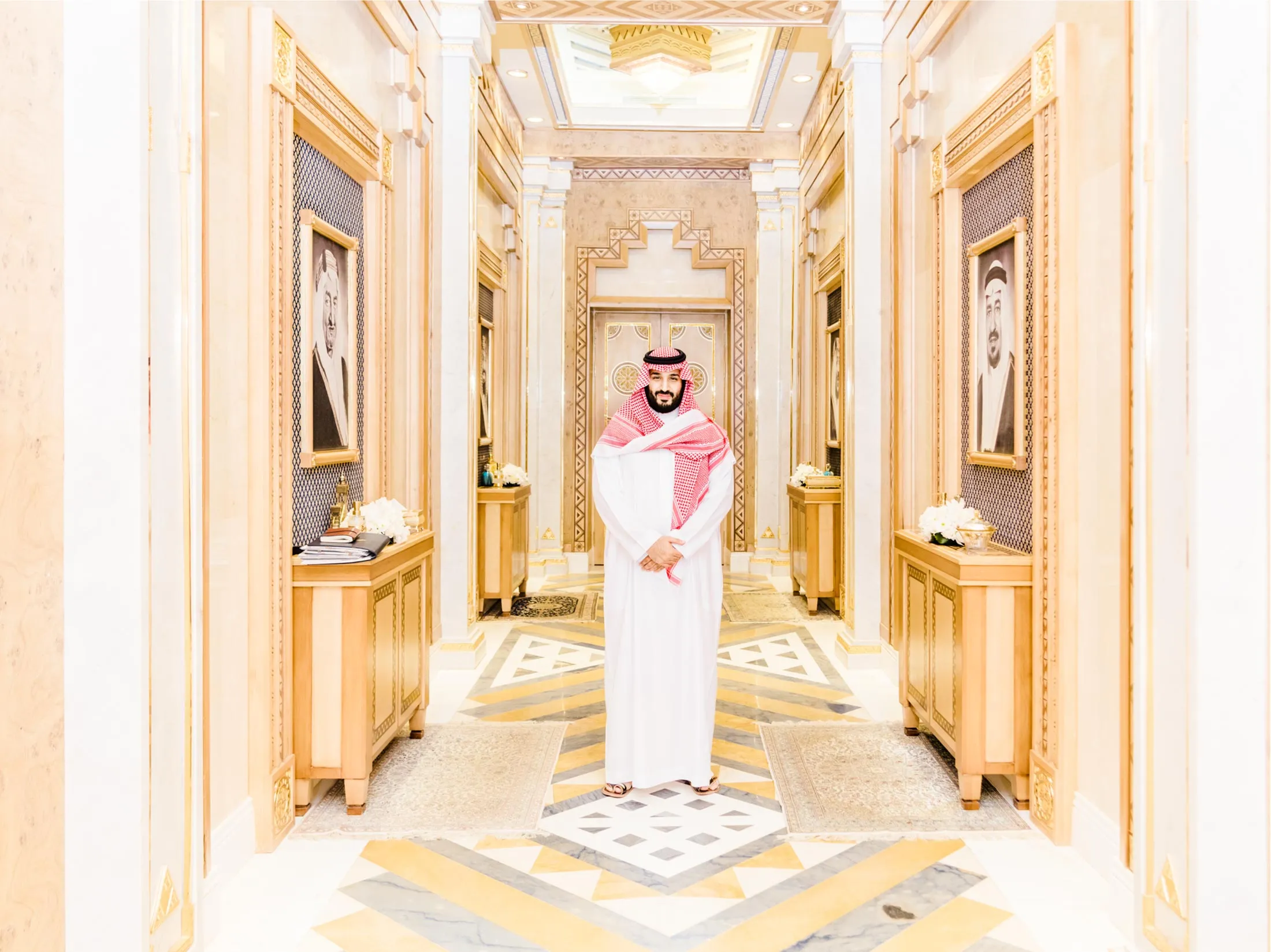 攝影師:Luca Locatelli為《彭博商業週刊》拍攝王子辭去了政府職務,開始工作,重組他父親的基金會,該基金會負責建設住房,並創辦了自己的非營利組織,旨在促進沙特青年中的創新和領導力。2012年,他的父親成為王儲。六個月後,穆罕默德王子被任命為他的宮廷首席顧問。逐漸地,他重新贏得了阿卜杜拉國王的青睞,承擔了需要強硬手腕的皇家特別任務。