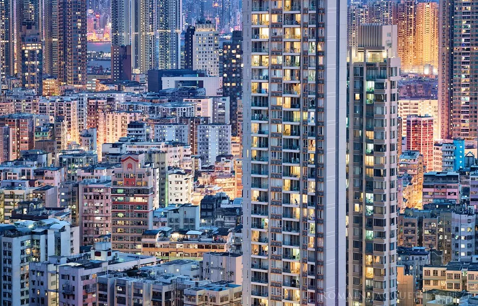 羅曼·雅克-拉格雷茲這個系列在 藍蓮花畫廊展出,並出現在他的 最新書籍中,雅克-拉格雷茲花費了一年多的時間完成。最耗時的步驟,他説,是尋找展示城市獨特建築的完美地點。他還等待着晴朗的日子——這在香港的天際線常常被霧氣籠罩的情況下是一項挑戰。當所有元素都到位時,他會拿起相機,從高樓或俯瞰城市的山丘上拍攝。