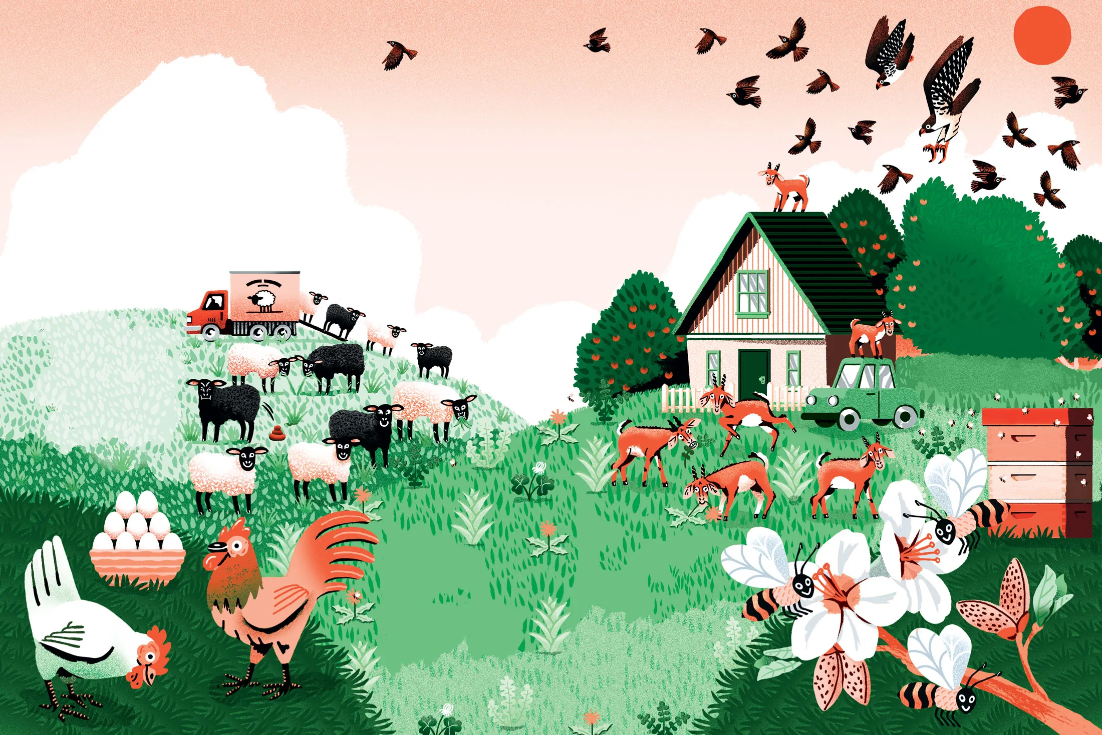 插圖:Cari Vander Yacht羊、雞,甚至獵鷹都加入了共享經濟。