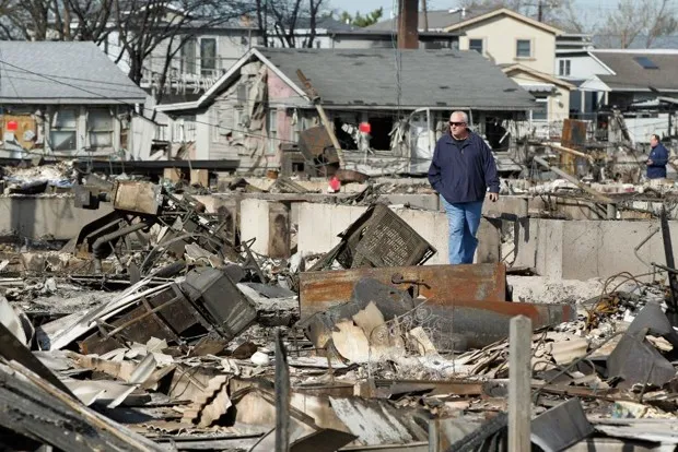 一名男子在2012年桑迪及隨後的火災後走過皇后區的布里齊角。盧卡斯·傑克遜/路透社鐘乳石分析顯示,17世紀中葉西加勒比海的颶風活動激增,隨後下降。因為歷史文獻和其他證據表明,在大西洋的那個時期颶風並沒有消失,研究人員認為它們只是發生在其他地方,主要是向北。雖然這種變化中的一些可能是自然的,他們表示,從1870年起,其主要驅動因素是人類的温室氣體扭曲了大氣。
