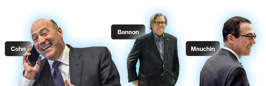 前高盛合夥人史蒂文·姆努欽擔任特朗普的國家財務主席,現在是特朗普提名的美國財政部長。特朗普還任命高盛總裁(以及該銀行的事實上的第二號人物)加里·科恩擔任白宮的首席經濟顧問。特朗普的核心圈子中還有其他高盛校友,包括前高盛銀行家安東尼·斯卡拉穆奇,他是特朗普過渡團隊執行委員會的成員,以及特朗普的競選經理史蒂夫·班農。