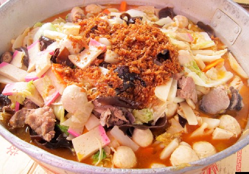 這種特色美食很像“大雜燴”,男女結婚前,男方必須在迎娶前一、兩天煮好菜尾,並分送給親戚朋友與街坊鄰居,份量少説百斤,有時達千斤以上。