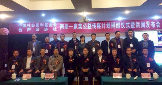 日前,“兩岸一家親”公益傳媒計劃捐贈儀式暨新聞發佈會在江西宜春舉行。本項目由中國社會福利基金會兩岸一家親基金、台聲雜誌社主辦,江西南苑藍浩文化傳媒有限公司和山東眾望文化傳媒有限公司承辦。中國社會福利基金會副秘書長繆瑞蘭,中華全國台灣同胞聯誼會顧問、江西省台聯名譽會長何大欣,台聲雜誌社總編輯竇為龍、宜春市民政局副局長周聲榮等,以及中央電視台、江西日報、宜春電視台等30多家媒體記者出席了新聞發佈會。