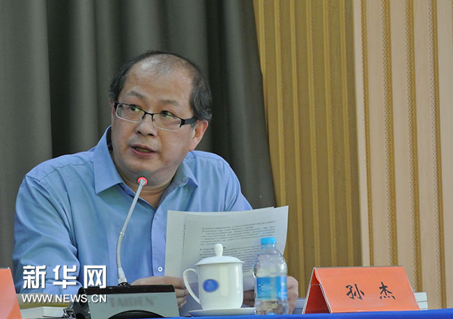 《世界經濟黃皮書》副主編、中國社會科學院世界經濟與政治研究所研究員孫杰做主題報告。(新華網 彭純 攝)