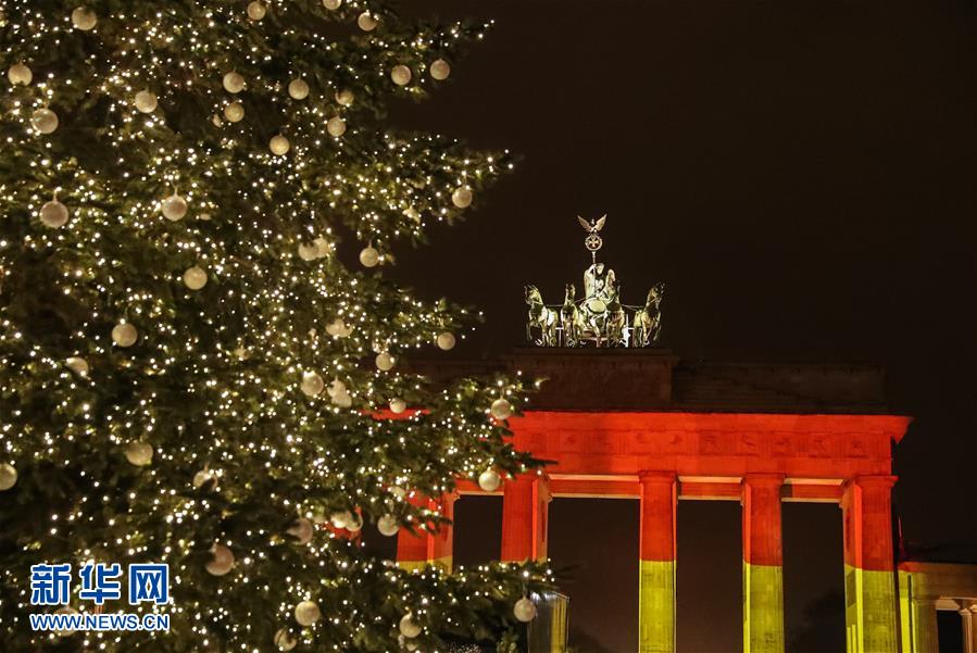 12月20日,在德國首都柏林,德國國旗樣式的彩燈點亮勃蘭登堡門,悼念聖誕集市襲擊案遇難者。當日,柏林多地舉行活動悼念聖誕集市襲擊案遇難者。柏林19日發生貨車衝入聖誕集市的恐怖襲擊事件,造成至少12人死亡、49人受傷。新華社記者單宇琦攝