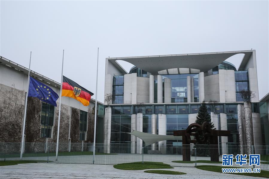 12月20日,在德國首都柏林,總理府為悼念聖誕集市襲擊案遇難者降半旗。當日,柏林多地舉行活動悼念聖誕集市襲擊案遇難者。柏林19日發生貨車衝入聖誕集市的恐怖襲擊事件,造成至少12人死亡、49人受傷。新華社記者單宇琦攝