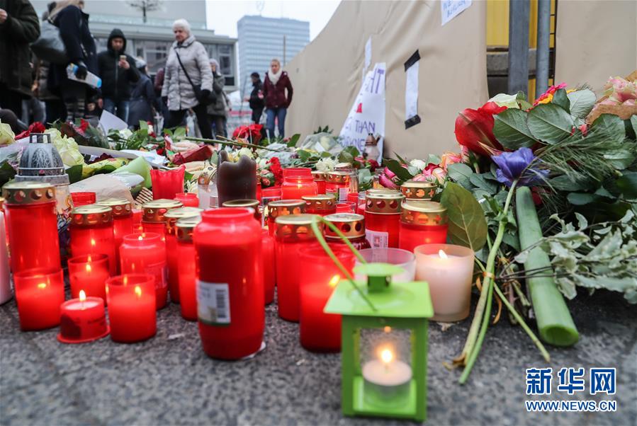 12月20日,在德國首都柏林聖誕集市襲擊案事發地點附近,人們放置蠟燭和鮮花悼念遇難者。當日,柏林多地舉行活動悼念聖誕集市襲擊案遇難者。柏林19日發生貨車衝入聖誕集市的恐怖襲擊事件,造成至少12人死亡、49人受傷。新華社記者單宇琦攝