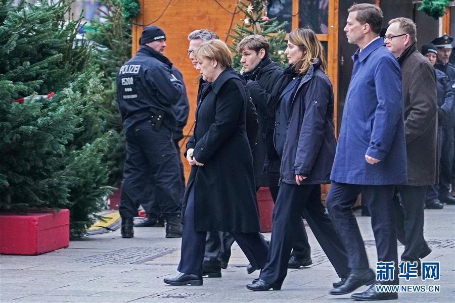 12月20日,在德國首都柏林,德國總理默克爾(中)抵達事發的聖誕集市悼念遇難者。當日,柏林多地舉行活動悼念聖誕集市襲擊案遇難者。柏林19日發生貨車衝入聖誕集市的恐怖襲擊事件,造成至少12人死亡、49人受傷。新華社記者王勍攝