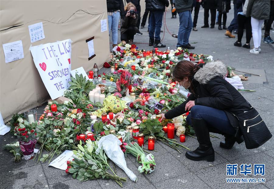 12月20日,在德國首都柏林,一名女子在聖誕集市襲擊案事發地點附近放置蠟燭,悼念遇難者。當日,柏林多地舉行活動悼念聖誕集市襲擊案遇難者。柏林19日發生貨車衝入聖誕集市的恐怖襲擊事件,造成至少12人死亡、49人受傷。新華社記者單宇琦攝