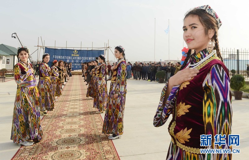 12月16日,吉扎克自由經濟區,中國玻璃製造商明源絲路實業公司落户奠基儀式現場。新華網記者 沙達提 攝