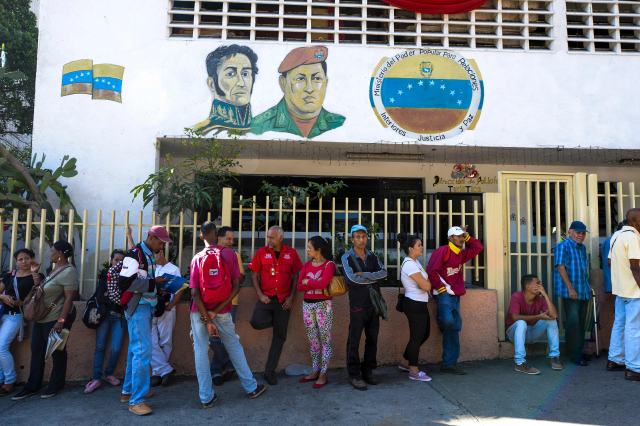 在委內瑞拉首都加拉加斯,一名男子在銀行外排隊等待兑換手中的100玻利瓦爾紙幣。(圖片來源:新華社)