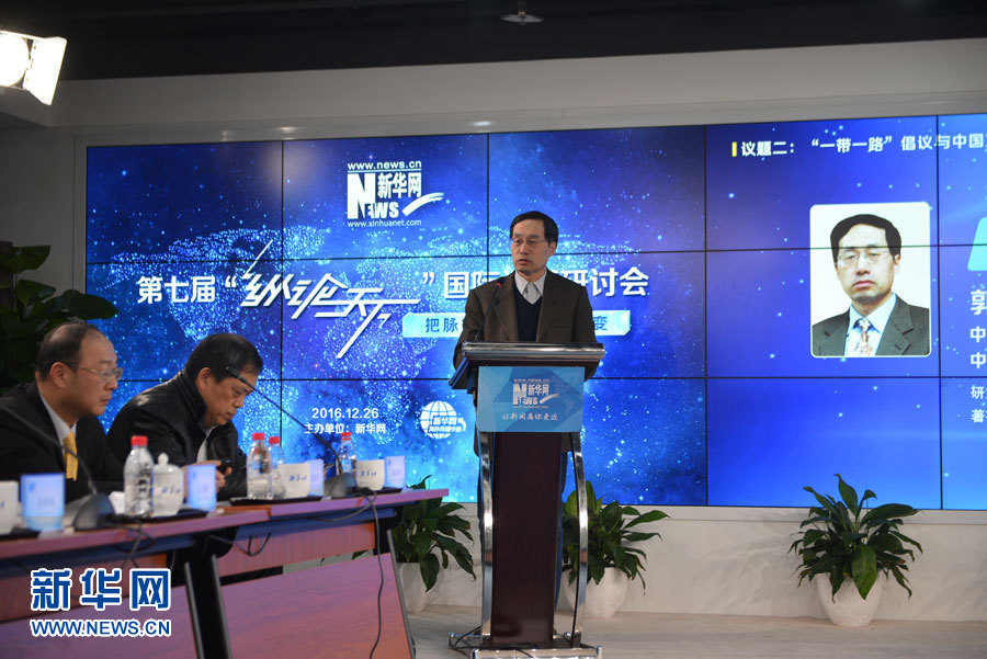 12月26日,新華網第七屆“縱論天下”國際問題研討會在北京舉行。圖為中國國際問題研究院研究員郭憲綱在發言。新華網 孫韜 攝