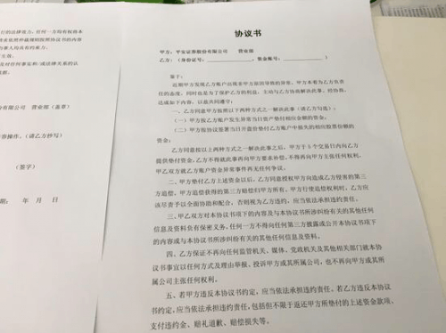 對此,記者採訪平安證券北京東花市營業部,營業部工作人員表示《協議書》是平安證券總部出的,他們只負責傳達,且營業部領導也提出在康先生簽訂《協議書》的基礎上對其進行5000元補償的建議,但是都被康先生拒絕了。平安證券總部表示,此事已提交相應業務部門處理,結果需等待。