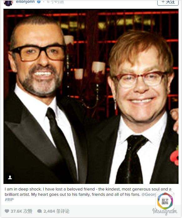 英國著名歌手埃爾頓·約翰當天也在Instagram賬户上貼出他與邁克爾的合影舊照並致哀,稱自己失去了一位“親愛的朋友——一個最善良、最慷慨的靈魂,一位出色的藝術家”。