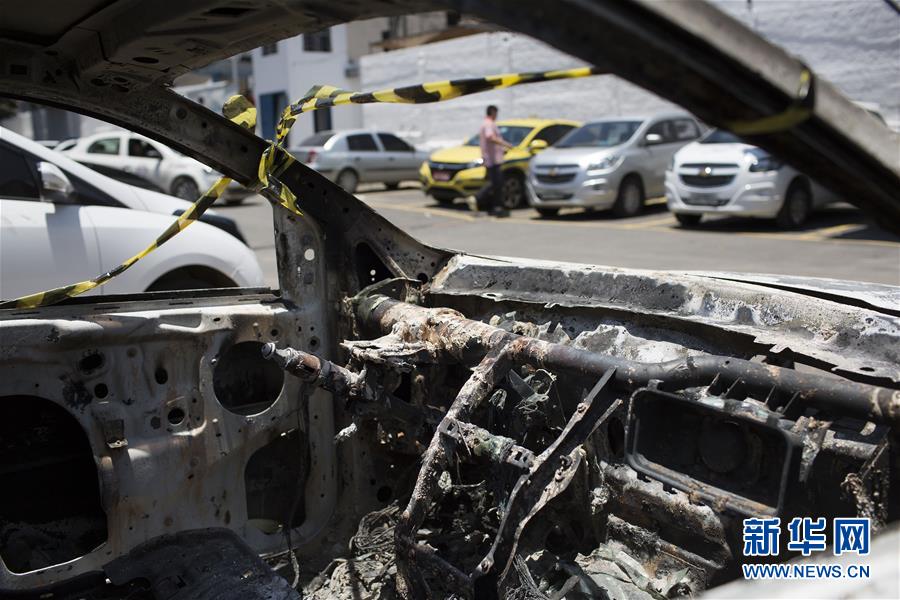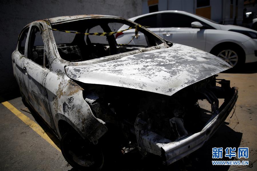 這是12月30日在巴西里約熱內盧州貝爾福羅舒一停車場內拍攝的被焚燬的希臘駐巴西大使基里亞科斯·阿米里迪斯租用的汽車。巴西里約熱內盧州民事警察局30日確認,29日在該州新伊瓜蘇市發現一輛被燒汽車內的屍體正是希臘駐巴西大使基里亞科斯·阿米里迪斯本人,司法部門已發佈抓捕令,要求逮捕包括大使夫人在內的3名嫌疑人。巴西民事警察局通報稱,根據目前調查,希臘大使被一名叫小莫雷拉的警察殺害,這名警察與大使夫人弗朗索瓦絲·阿米里迪斯系情人關係,因此初步判定這起犯罪為情殺。另外一名嫌疑人是警察小莫雷拉的表弟愛德華多。新華社/美聯