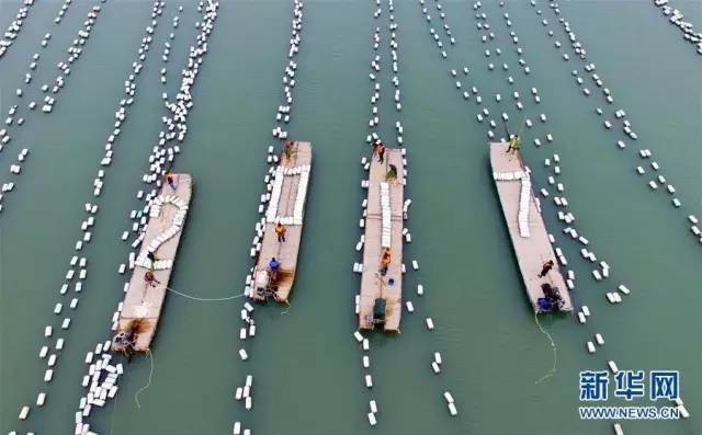 2016年12月30日,在福建省晉江市金井鎮圍頭村海上養殖區,漁民用水產養殖用的泡浮拼出“2017”字樣,迎接新年的到來,祈盼新的一年風調雨順。