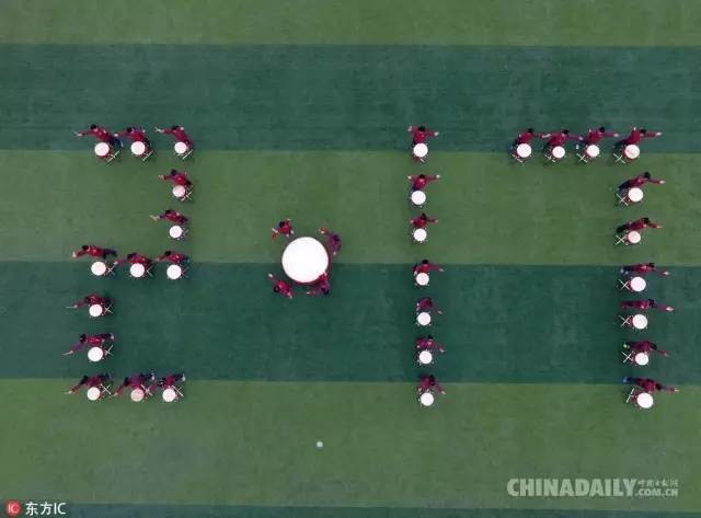 2016年12月30日,在貴州省遵義市餘慶縣城關一小,學校的威風鑼鼓隊正在排練迎新活動,鑼鼓隊組成“2017”字樣,迎接新年的到來。