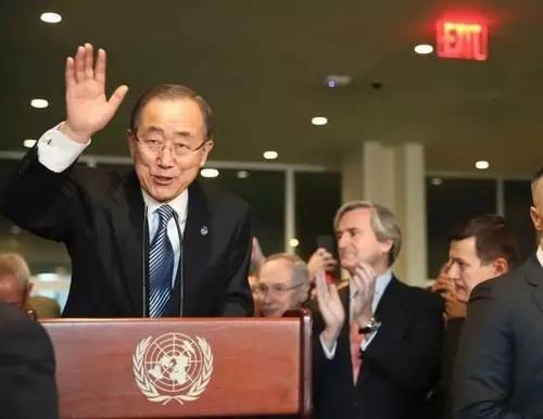 30日,聯合國秘書長潘基文在其10年任期最後一個工作日發表講話,與同事合影留念後揮手告別。潘基文自2007年起擔任兩屆總計10年的秘書長,也是聯合國第8位秘書長。