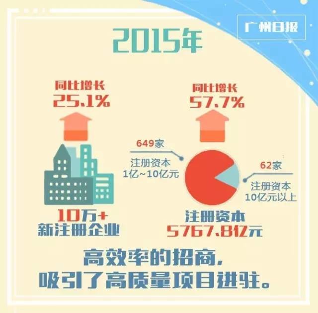 這是截至目前,世界500強在廣州落户情況的成績表,這也是衡量一座城市投資環境和經濟地位的一項通行指標。*僅今年以來,廣州又新增16個世界500強項目,投資總額272億元。*1~6月,只用了半年時間,廣州新增企業註冊資本額、1億~10億元中型項目、超10億元大型項目三項數字,就均已超過2014年全年的成績。