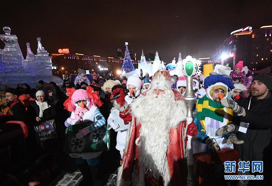 12月29日,在俄羅斯首都莫斯科,“嚴寒老人”亮相冰雕展。當天,2016年“冰雪莫斯科·闔家團圓”新年冰雕藝術節在莫斯科俯首山開幕,活動將持續至2017年1月8日。新華社/衞星社