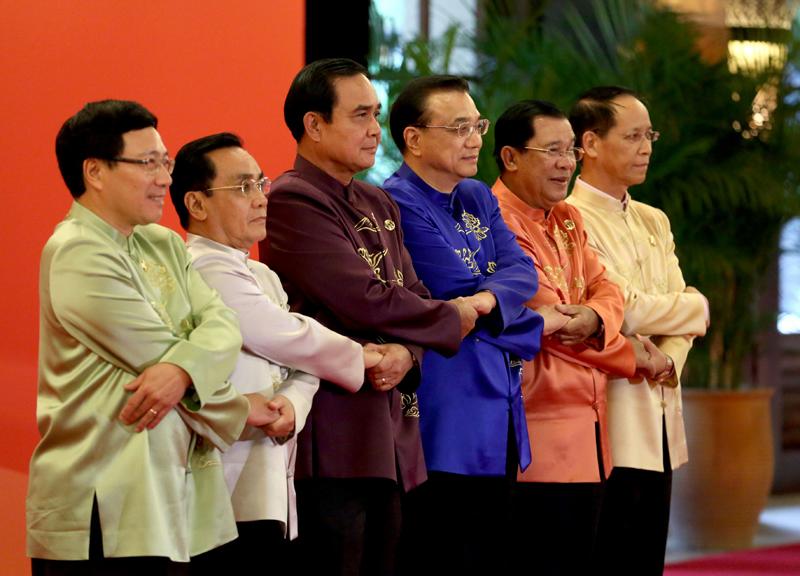 3月22日,李克強總理在海南三亞歡迎來華出席瀾滄江—湄公河合作首次領導人會議的泰國、柬埔寨、老撾、緬甸和越南五國領導人,與他們握手併合影留念。2014年,李克強在第17次中國—東盟領導人會議上提出,在中國—東盟(10+1)框架下探討建立瀾湄對話合作機制。