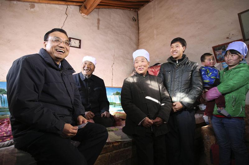 沿着崎嶇山路顛簸1個多小時後,李克強2月1日下午來到寧夏固原西吉縣半子溝村特困户王旗家中。70歲的王旗癱瘓在牀,只能靠低保生活。總理仔細詢問低保發放、大病醫保報銷等情況。