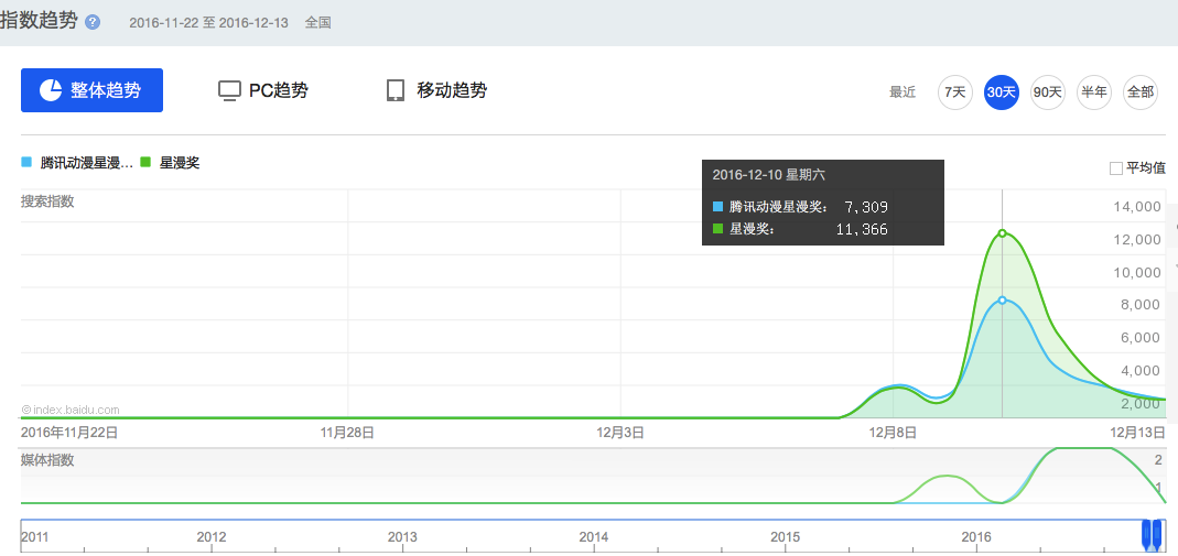 四大賽事在作品徵集階段共收到超過8000部作品,得到了眾多參賽者的支持。騰訊動漫星漫獎(星漫獎)的百度指數也超過18000。微博話題#星漫獎來了#多次登上動漫榜第一名。
