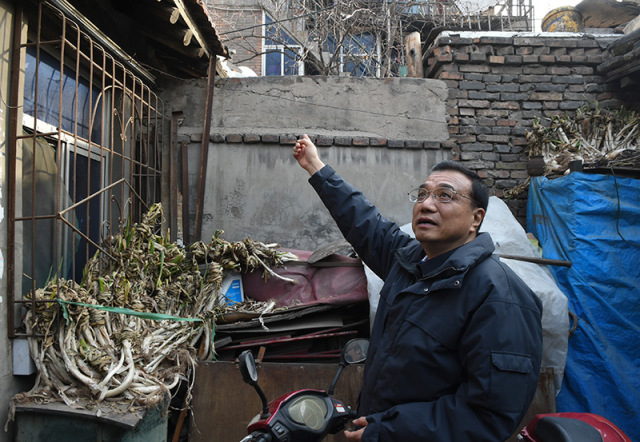 1月4日,李克強總理在太原市小北關棚户區考察。他對這裏的居民説:“我自己就是在棚户區成長起來的,深知你們的艱辛。”該片區830户,僅一個水龍頭,一個公廁,沒有暖氣和下水道。臨別時李克強對居民們説:一定要儘快讓你們住上新樓房!
