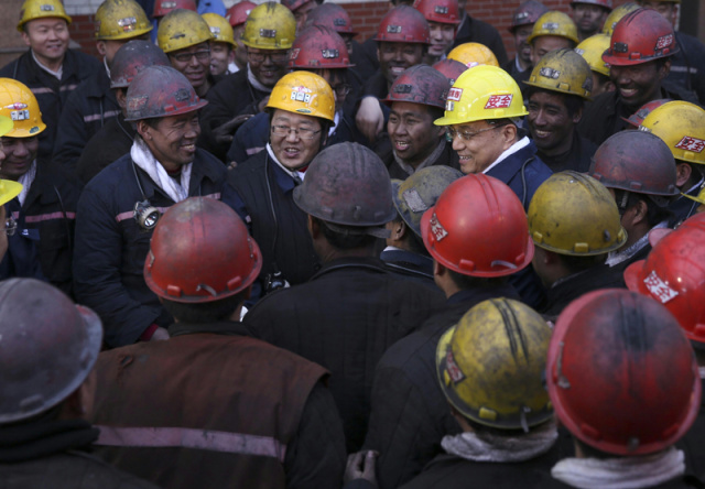 1月5日,李克強來到山西焦煤集團官地礦,下井前遇到剛出井的礦工。在滿臉黝黑的礦工人叢中,總理緊緊握着他們的手説:“你們自己常年在黑暗的井下工作,卻照亮了他人。有人説你們是煤黑子,我説你們是煤亮子。煤炭工人不僅是山西的脊樑,也是國家的脊樑。”