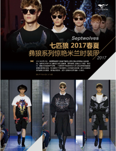 中國男裝領導者品牌七匹狼進入快速發展時期。如同被按下“快速”鍵一般,七匹狼從中國男裝時尚開始一路突圍,連續兩年受邀參加米蘭時裝週,於國際市場上展示關於中國元素與狼文化的獨特魅力。在國內市場不僅持續保持着領先地位,同時還不斷自我突破,調整戰略佈局,尋求品牌未來的創新空間。