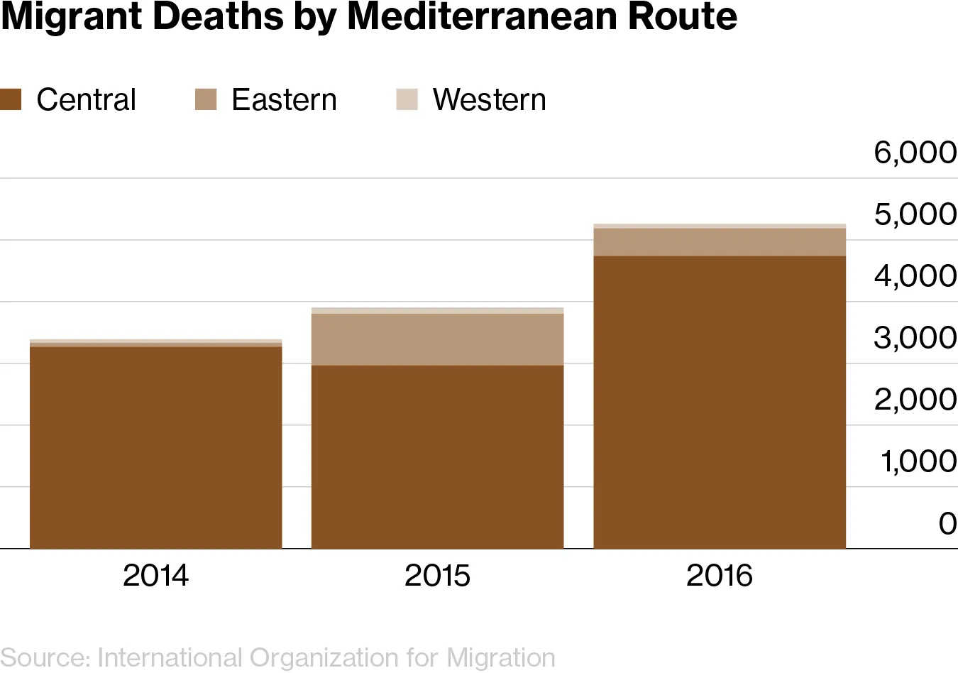 Eunavfor在地中海也很忙,救助通過利比亞的移民。2016年3月,歐洲聯盟與土耳其達成的一項絕望協議大幅減少了從土耳其到希臘的東地中海移民數量。但從利比亞出發的中央地中海危險船隻橫渡依然頻繁,2016年成為有記錄以來最致命的一年。根據國際移民組織的數據,2016年在中央地中海航線上估計有4,576人遇難,而2015年為2,869人。