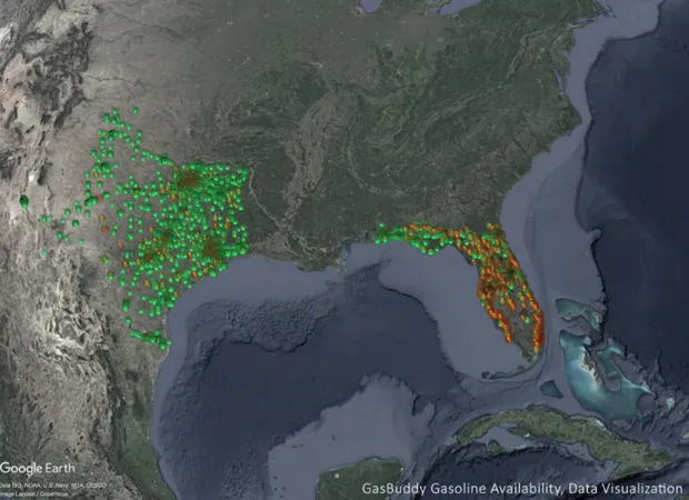 紅點顯示截至週一(9月11日)佛羅里達州加油站停業的情況。GasBuddy但這一切都無法跟上週四、週五和週六對燃料激增的需求。一旦州長斯科特下達幾乎覆蓋南佛羅里達的撤離命令,“那六七個縣的每個人都必須跳上他們的車,給油箱加滿油,向北移動,”詹姆斯説。“因此,原本只限於佛羅里達的許多停業情況向北蔓延。”