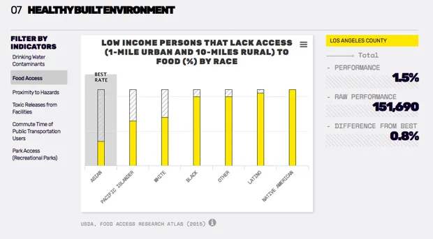 約翰·金,加州推進項目的執行董事,在看到該組織之前的地圖項目結果後,想出了按種族繪製不平等地圖的想法,healthycity.org,該項目專注於洛杉磯的社區。通過這張地圖,金可以看到某些社區如何受到槍支暴力等問題的不成比例影響。