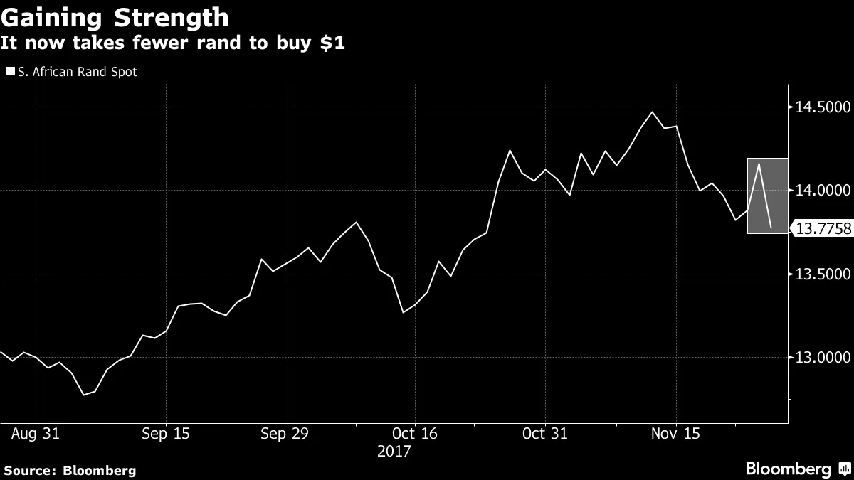 南非躲過了一顆(穆迪的)子彈南非蘭特自三月以來表現最好,週五穆迪投資者服務公司決定不將南非的信用評級降至投資級以下或垃圾級後,蘭特上漲了2.80%。如果降級,將對貨幣造成毀滅性影響,因為這可能迫使只能持有高等級國家債券的國際投資者拋售其持有的債券。此次緩解意味着南非保留了在花旗集團世界政府債券指數中的地位。根據法國外貿銀行的説法,退出該指數可能會引發高達100億美元的資金外流。今年,由於政治內鬥抑制了提升非洲最工業化經濟體的努力,貨幣經歷了過山車般的波動,彭博新聞的達娜·埃爾·巴爾塔吉和科琳·戈科報道。自三月財政部長普拉文·戈爾丹被解僱以來,該國的外部信用評級被兩家評級機構降至垃圾級,經濟增長停滯。南非尚未走出困境。穆迪表示,在二月份的預算之後,可能仍會下調目前為Baa3的評級。政府正在考慮在接下來的兩週內採取措施,結合增税和削減開支,以在2019財年節省400億蘭特(29.1億美元)。