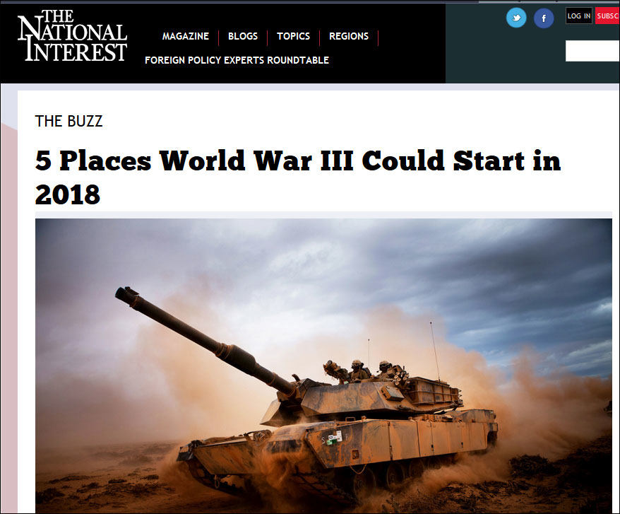 美媒預測2018年恐爆發世界大戰地區 台灣列第二_風聞